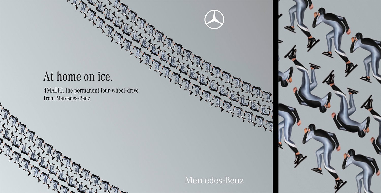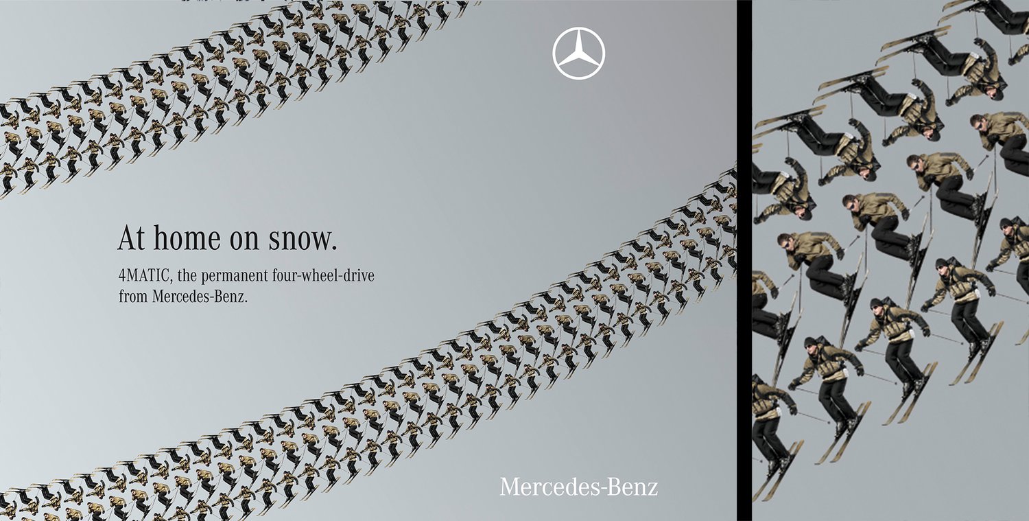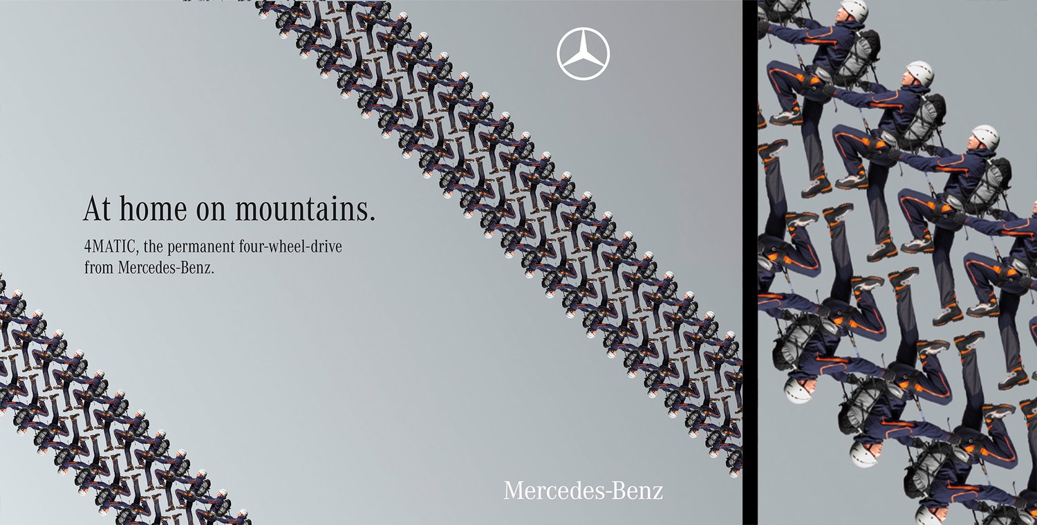 Awarded print campaign to promote the 4MATIC four-wheel-drive range from Mercedes Benz, highlighting it's grip on the various terrains drivers might encounter.