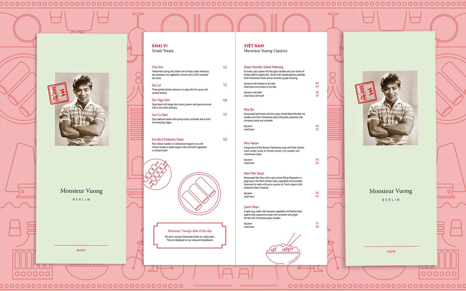 Brand Design (Illustrations, menue and in store lighting object) for Monsieur Vuong, the famous Vietnamese restaurant based in the heart of Berlin.